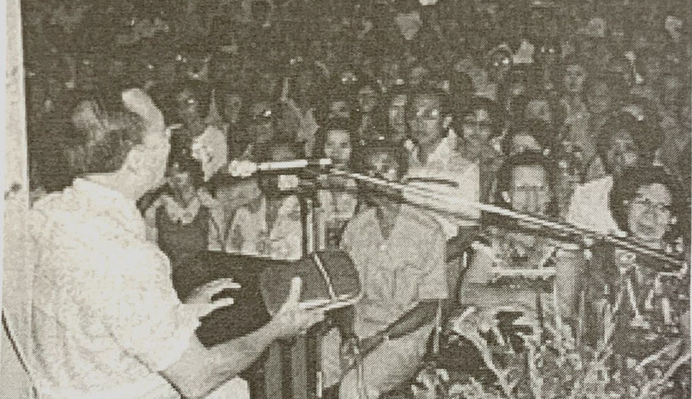 Malam Anugerah di Wisma Pancasila yang dilayani oleh Ev. Jerimia Rim, 2000 anak muda dibarui hidupnya. KKR ini diadakan pada tanggal 1-3 Agustus 1979 yang merupakan momentum Revival yang luar biasa. Foto ini diambil dari buku "30 Years Walk with Jesus" oleh Dr. Bambang Budijanto